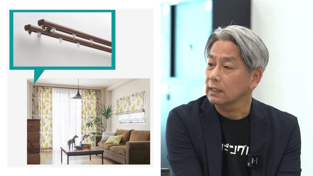 八重島氏: トーソー株式会社は、カーテンレール・ブラインド・ロールスクリーンを製造・販売しているメーカーです。1949年に創業し、今年で76年目を迎えます。売上高はおよそ200億円で、そのうち100億円がカーテンレールです。カーテンレールについては国内シェアの半分近くを占めており、歴史的にも厚地カーテンとレースを二重掛けするスタイルを日本に広めたという自負があります。残りの100億円はロールスクリーンなどブラインド類の売上で、こちらは国内3位のポジションです。